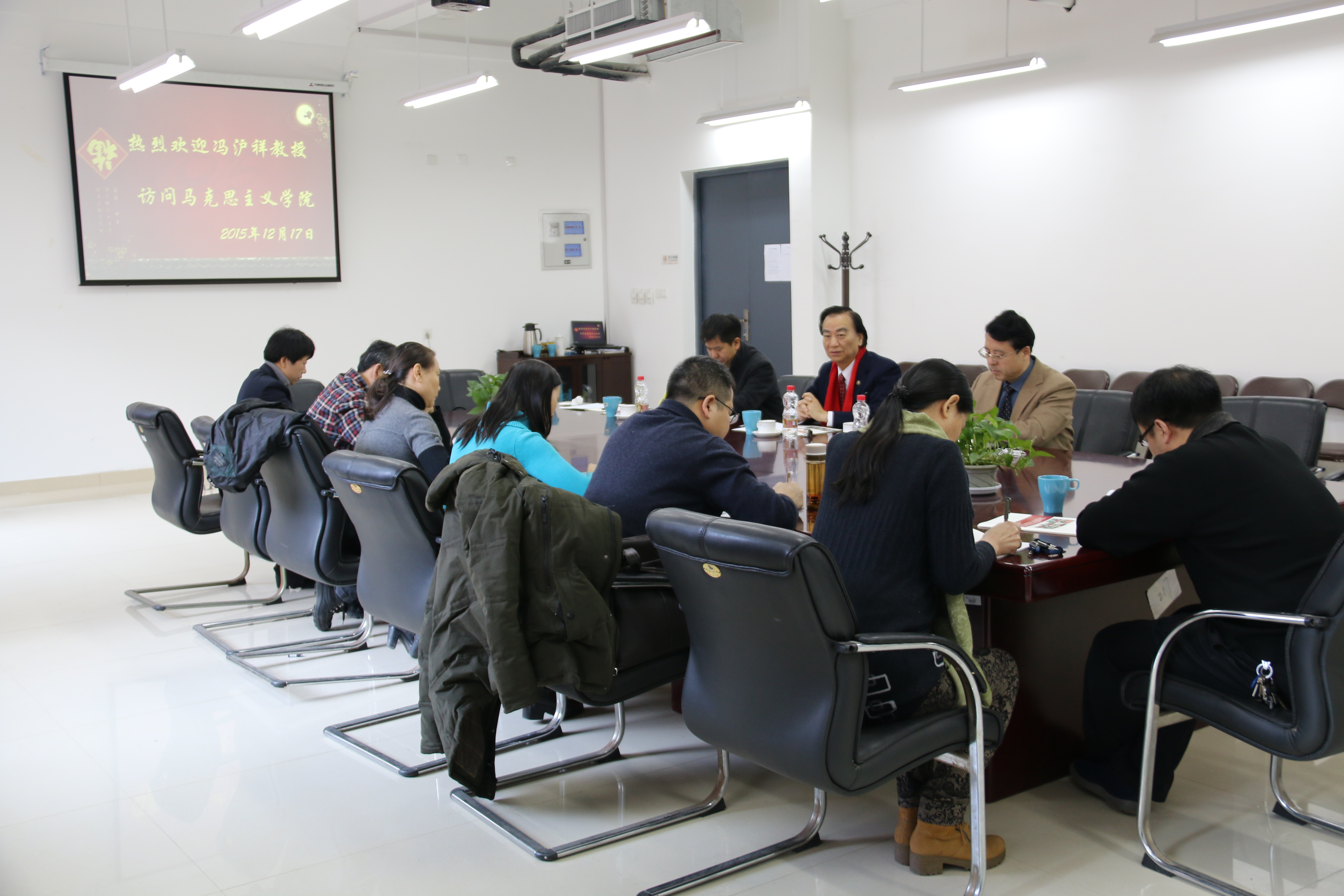 与会教师与冯沪祥教授进行了深入交流讨论。田鹏颖院长总结指出,冯沪祥教授对于如何做才能使“中国优秀传统文化”与“马克思主义”完美契合所提出的三条建议很有建设性,将积极对待。