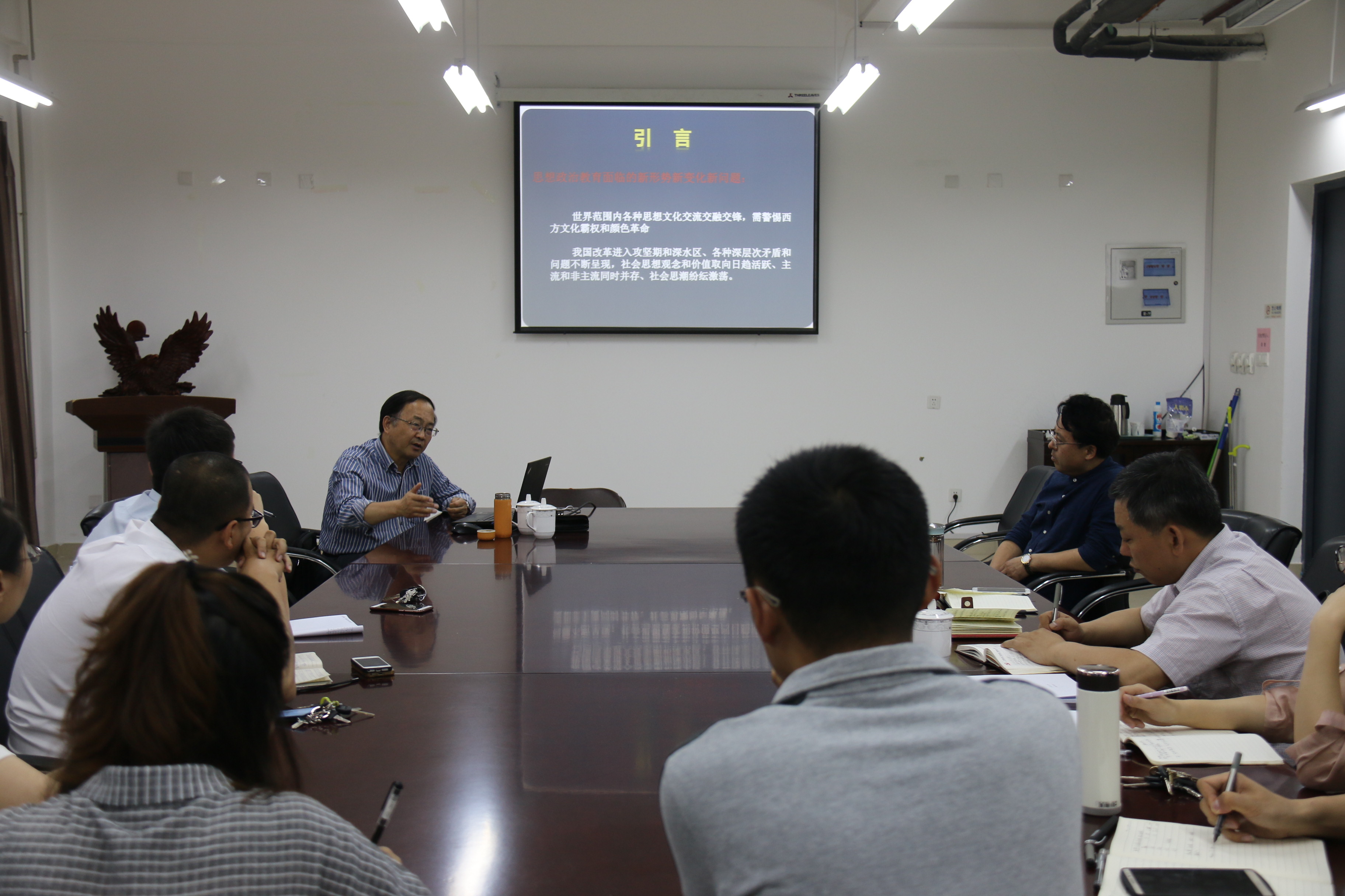 王学俭作了题为《思想政治教育的研究视角》的主题报告,为与会师生讲述了他关于思想政治教育研究的基础创新、维度创新、领域创新、价值引导、创新思考方面的一些思考,以《思想政治教育本质问题再探讨》、《多维空间视域下的思想政治教育研究》、《立德树人是中国特色社会主义大学立身之本》等研究成果为例,具体分析了思想政治教育研究创新的重要意义。