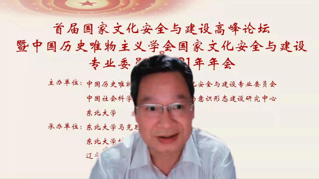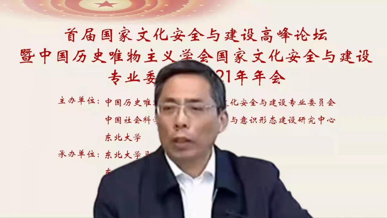 东北大学党委副书记张国臣教授首先致辞。他代表学校对大会的成功召开表示热烈祝贺,对众多学者的辛勤付出表示诚挚谢意,对出席会议的各位嘉宾表示衷心感谢。他指出,文化是国家和民族生存与发展的重要力量,实现中国梦需要物质文明和精神文明的均衡发展与相互促进。文化安全作为总体国家安全观的重要内容之一,是国家安全体系的重要部分,必须增强忧患意识,始终居安思危,贯彻总体国家安全观。他强调,东北大学将始终与国家民族命运紧密相连、与时代发展同向同行,在深入学习贯彻党的十九届六中全会精神的基础上,从党和国家发展大局的高度深刻认识维护国家文化安全的重大意义,并以马克思主义为指导,积极为党和人民述学立论、建言献策,以“自强不息、知行合一”的文化基因,不断为新时代中国特色社会主义建设注入新的力量。
