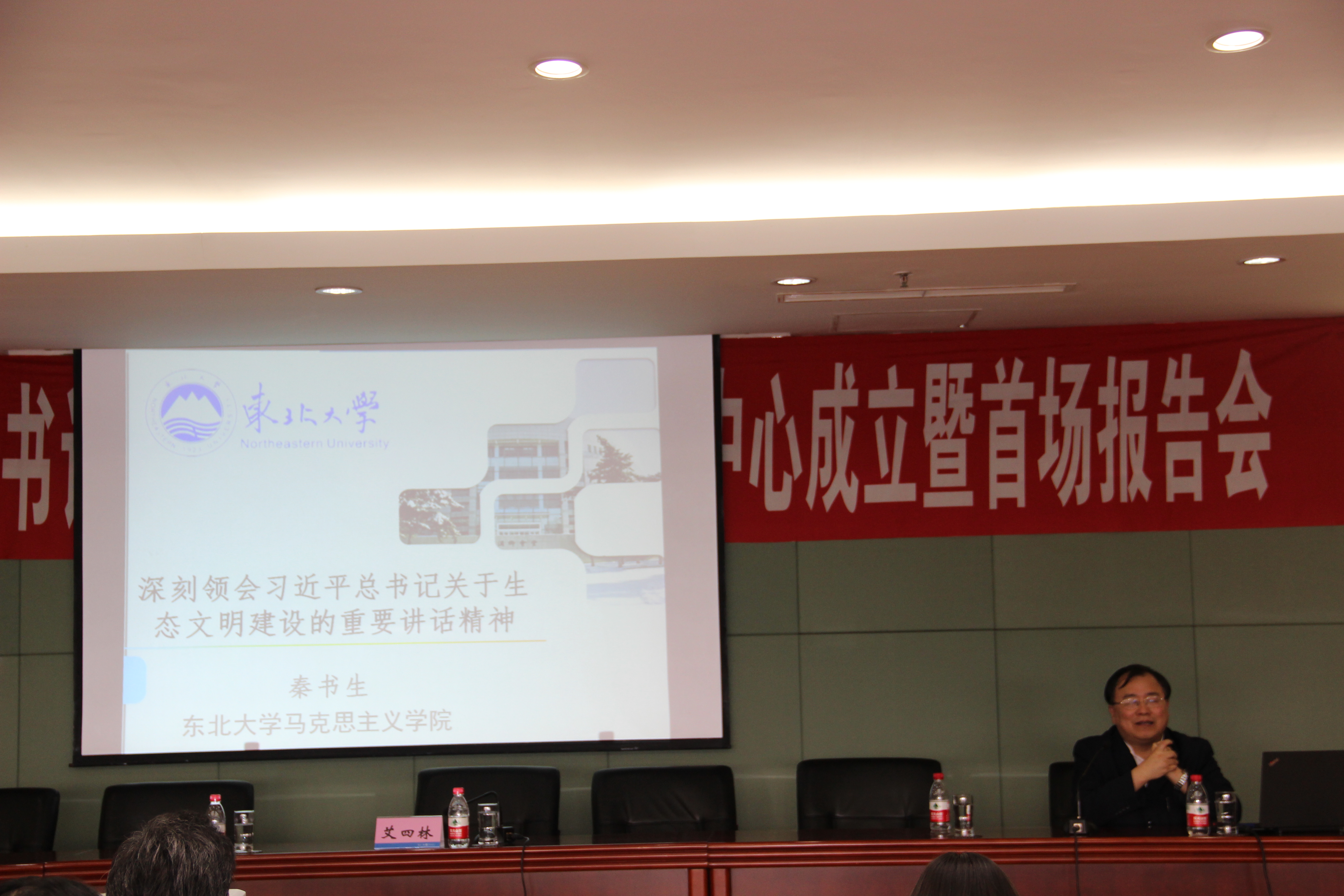 5月6日下午在汉卿会堂,十大体育投注平台 马克思主义原理研究所所长秦书生教授在东北大学习近平总书记系列重要讲话精神研究中心成立大会上作了题为《深刻领会习近平总书记关于生态文明建设的重要讲话精神》的报告。报告会由院长田鹏颖教授主持。