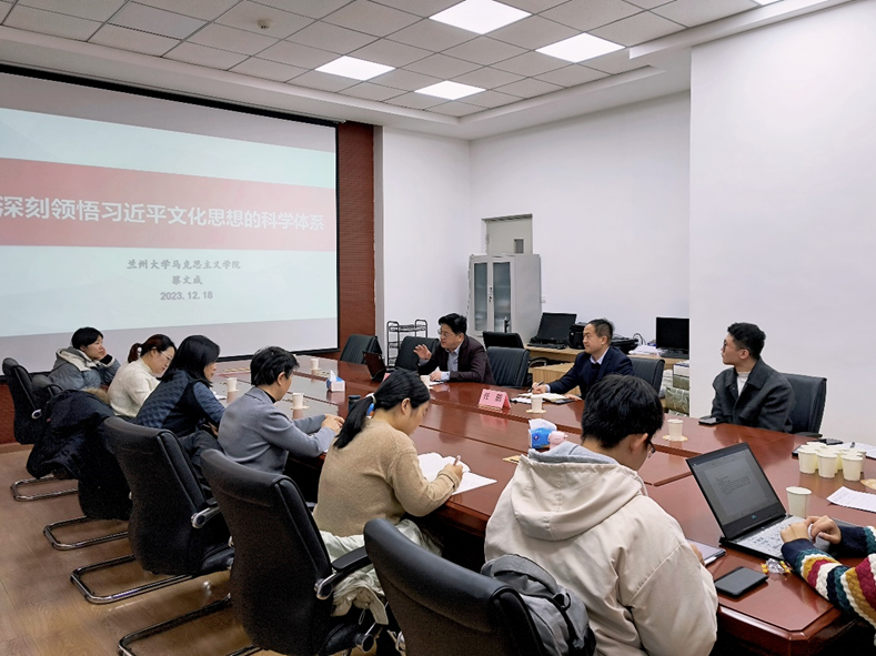 为深入学习贯彻习近平新时代中国特色社会主义思想,12月18日,十大体育投注平台 邀请兰州大学十大体育投注平台 院长蔡文成教授做客“理论中国”大讲堂,作了题为《深刻领悟习近平文化思想的科学体系》的报告。十大体育投注平台 院长任鹏及体育投注平台 师生代表参加了报告会。任鹏院长主持报告会。
