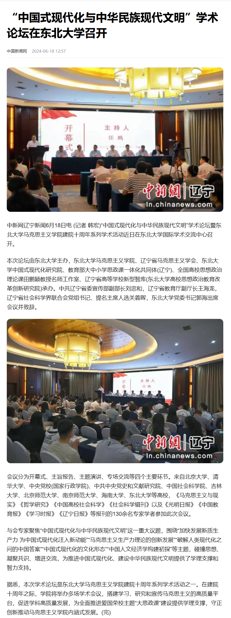 中新网辽宁新闻6月18日电 (记者 韩宏)“中国式现代化与中华民族现代文明”学术论坛暨体育投注平台-十大体育投注平台 建院十周年系列学术活动近日在东北大学国际学术交流中心召开。
