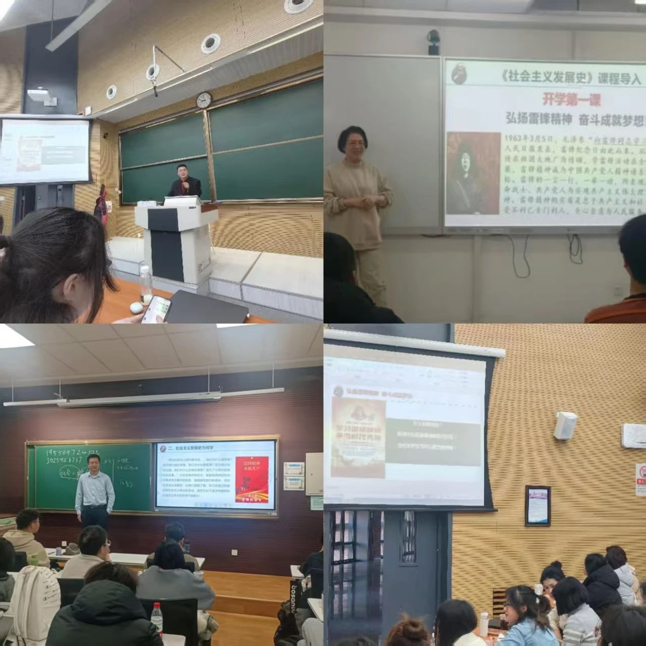 在《社会主义发展史》的课堂上,授课教师通过讲授学习历史与传承红色文化的关系,引导青年学生学习雷锋精神,帮助他们坚定理想信念,厚植家国情怀,增强集体意识,发扬团结精神,把个人融入集体、小我融入大我,不负韶华、勇于担当,为民族复兴贡献青春力量。