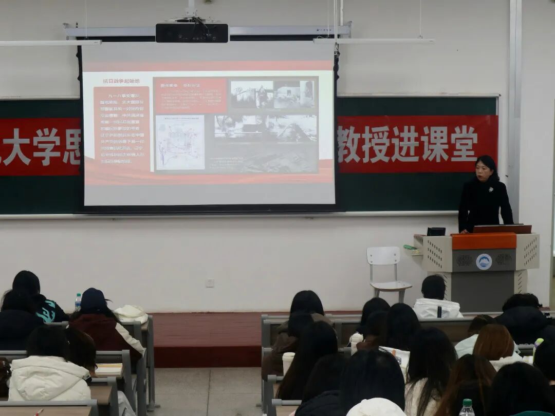 张璐作题为《中国共产党领导东北抗战的历史贡献》的专题教学。她梳理了中国共产党在东北抗战中发挥领导核心作用的历史脉络,指出党领导东北军民团结抗战,体现了中国人民抗日战争胜利是以爱国主义为核心的民族精神的伟大胜利。她希望,同学们深刻领会伟大抗战精神和东北抗联精神,自觉赓续红色血脉、坚定历史自信、增强历史主动,勇担民族复兴的时代重任。